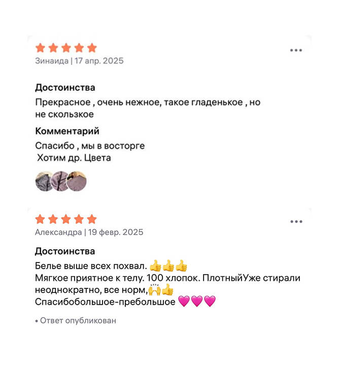 У нас есть базовая коллекция на маркетплейсах. Та же ткань, то же внимание к качеству — только стандартные размеры.